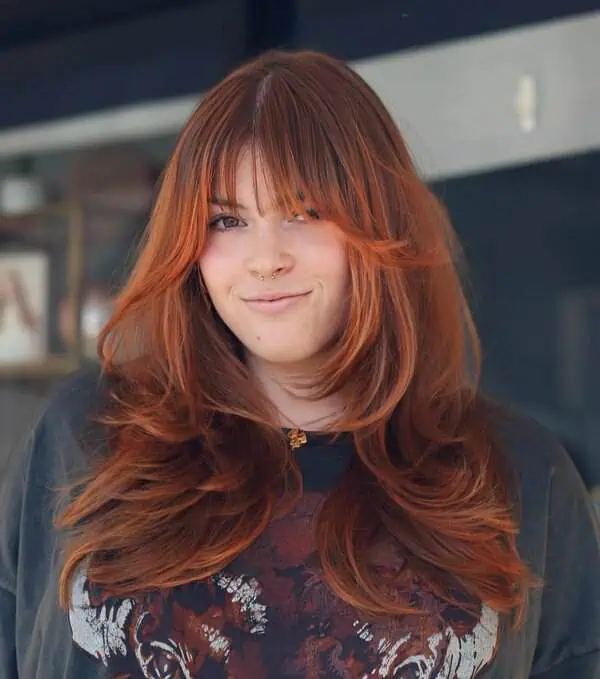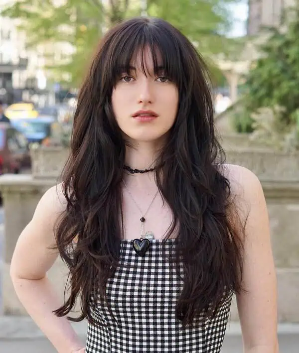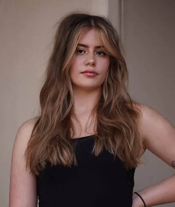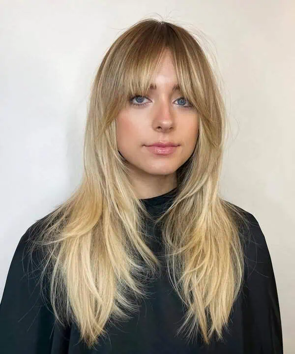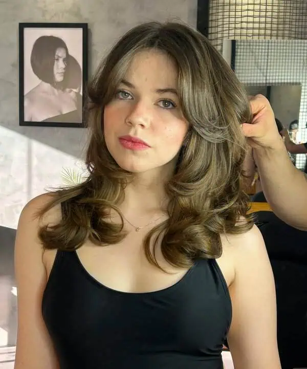 Curtain šiške u kombinaciji s dugim slojevima stvaraju savršeno uokvirivanje lica. Padaju nježno sa strane, naglašavaju oči i jagodice te daju frizuri elegantan, pomalo retro izgled.
