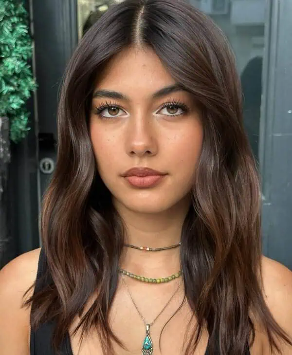 Srednja dužina je za ovalno lice prava zlatna sredina – pruža dovoljno prostora za slojeve, teksturu i pokret, a istovremeno ne skriva elegantne proporcije. Ova dužina odličan je izbor za sve koji žele više svestranosti u oblikovanju, jer jednako dobro pristaje i ravnoj i valovitoj kosi.
